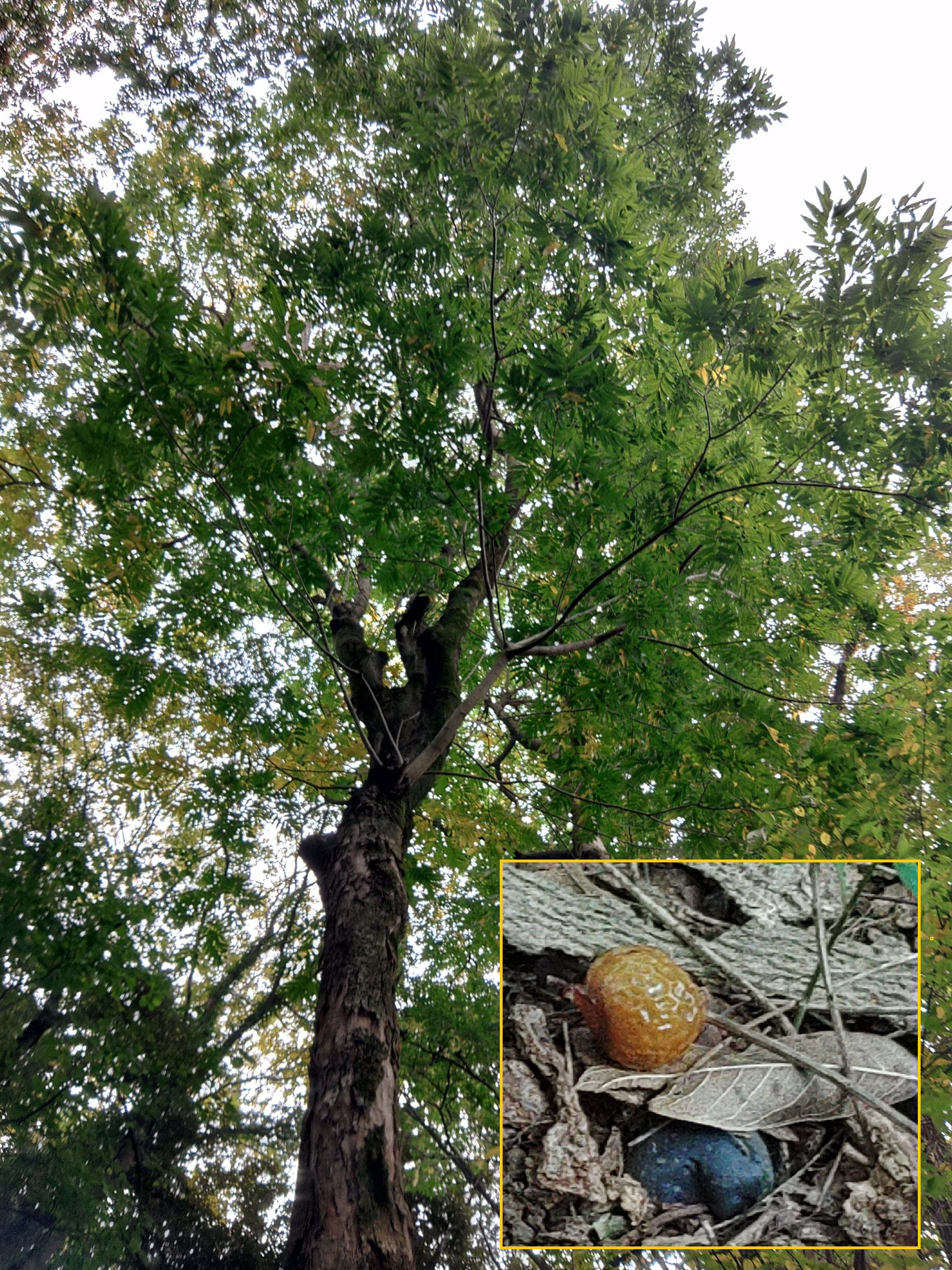 ムクロジ:ムクロジ科ムクロジ属:インドから東アジアの温帯域に自生、日本では茨城以南、10枚の偶数の波状複葉、黒くて硬い実は羽根玉利用で有名。