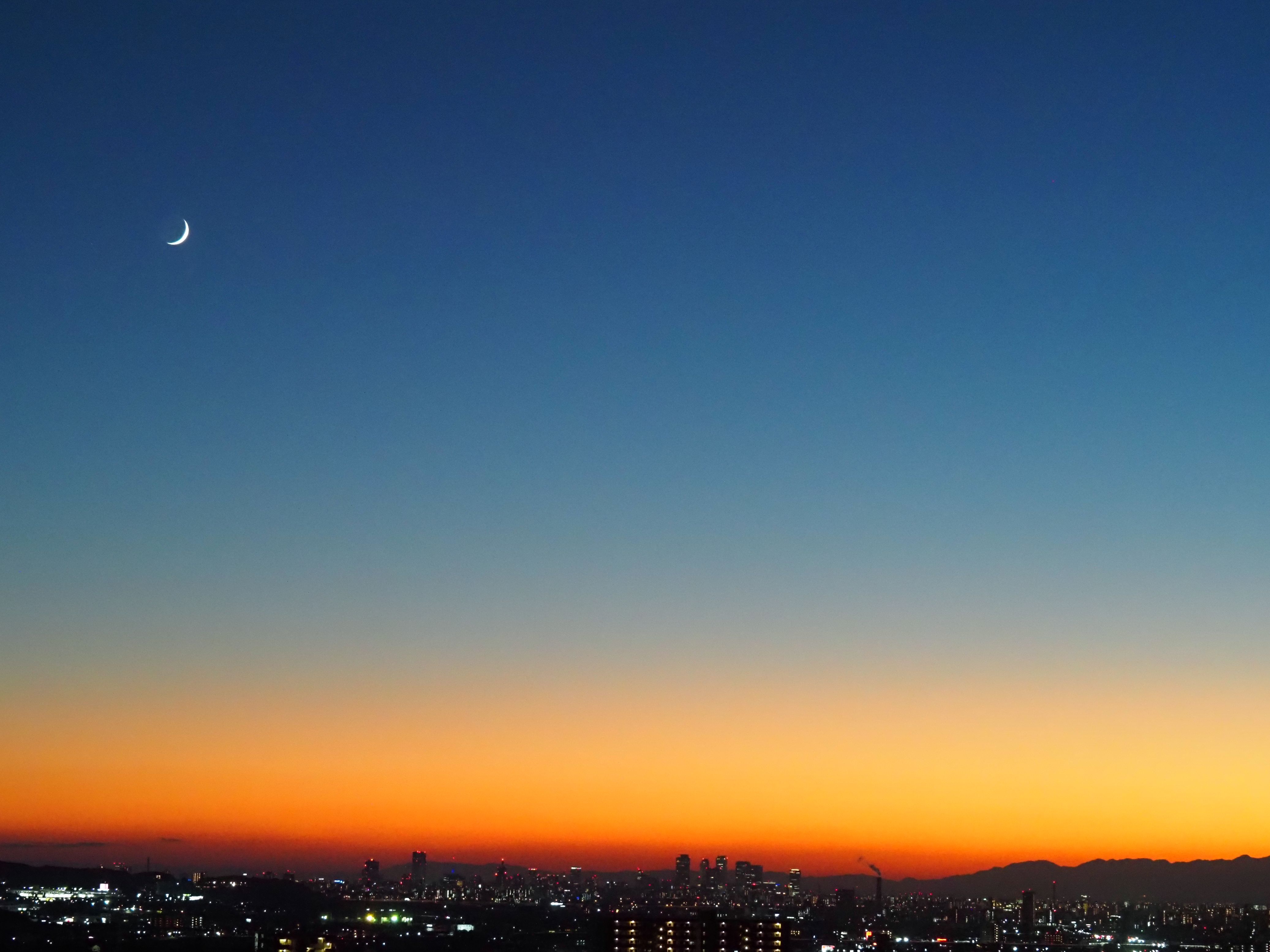 | 澄んだ空の夕焼けと三日月 |