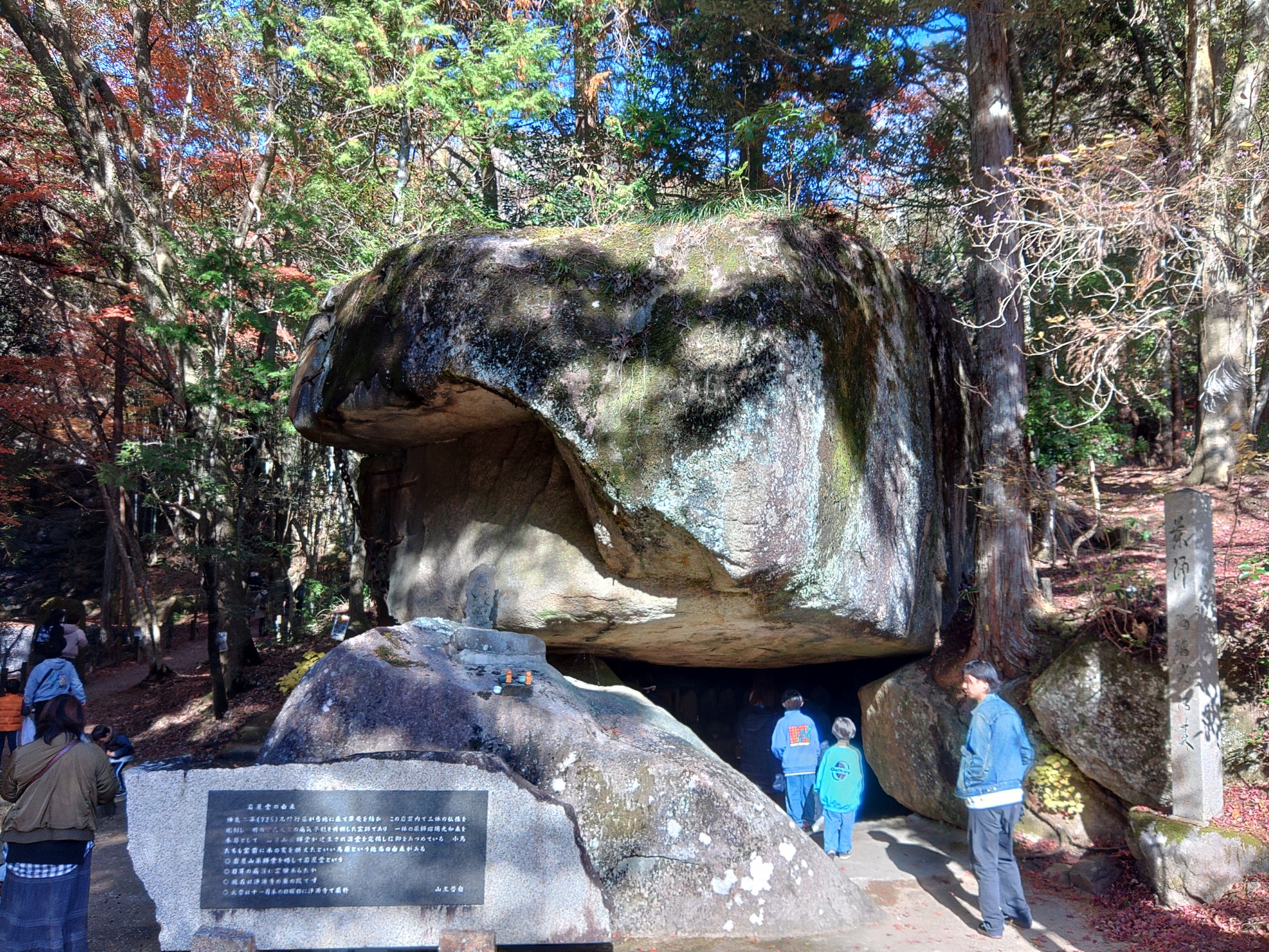 岩屋堂〜紅葉の名所、もう紅葉はぼぼ終わっていた。行基様がこの岩穴で仏様を掘ったらしく岩がお堂になっている〜スマホ撮影