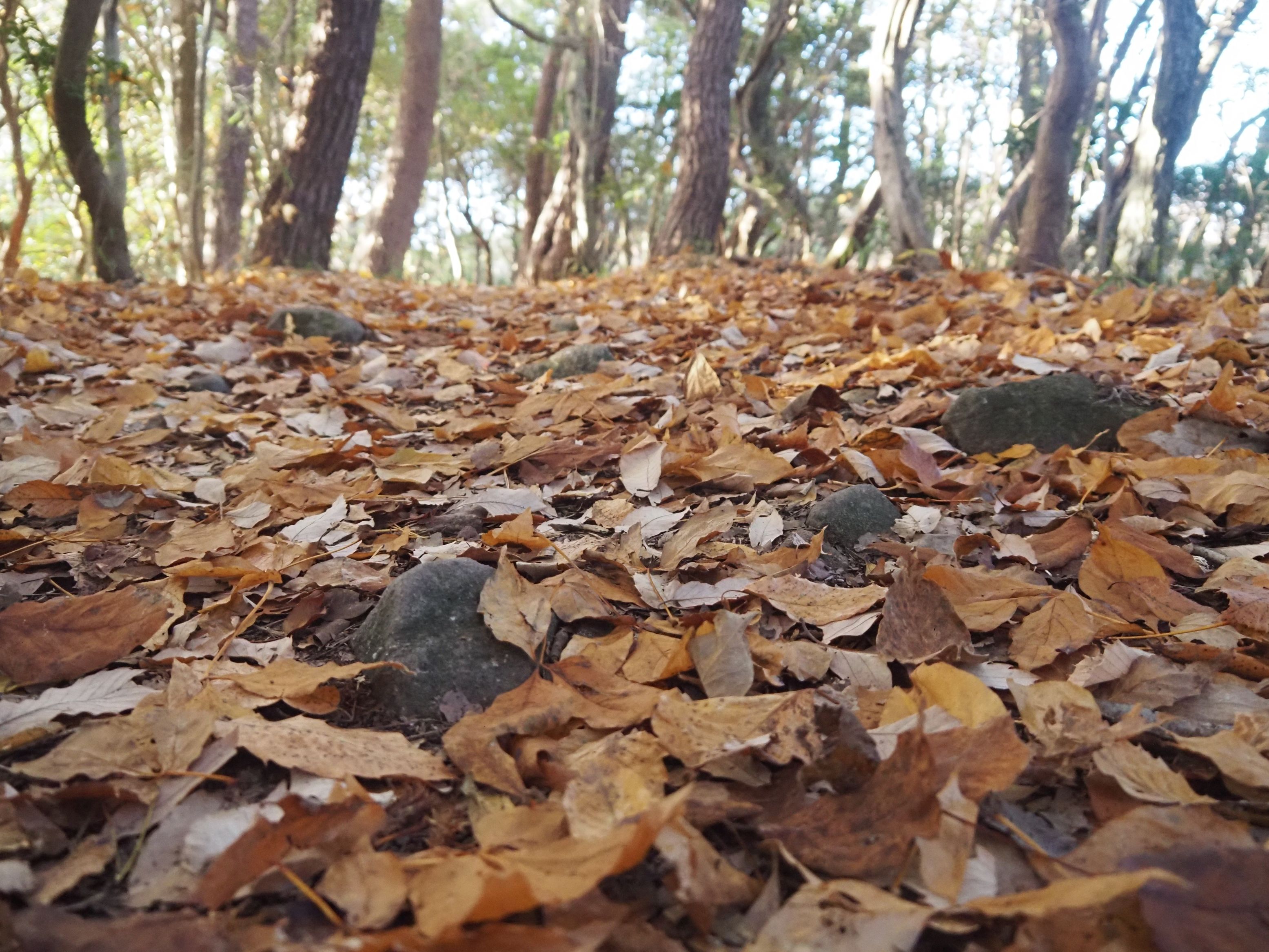 枯葉の山道〜黄葉が多い、コナラ・タカノツメ・シロモジ・オオウラジロ・・・乾燥地はサクサク、谷沿いはマールトールの香り