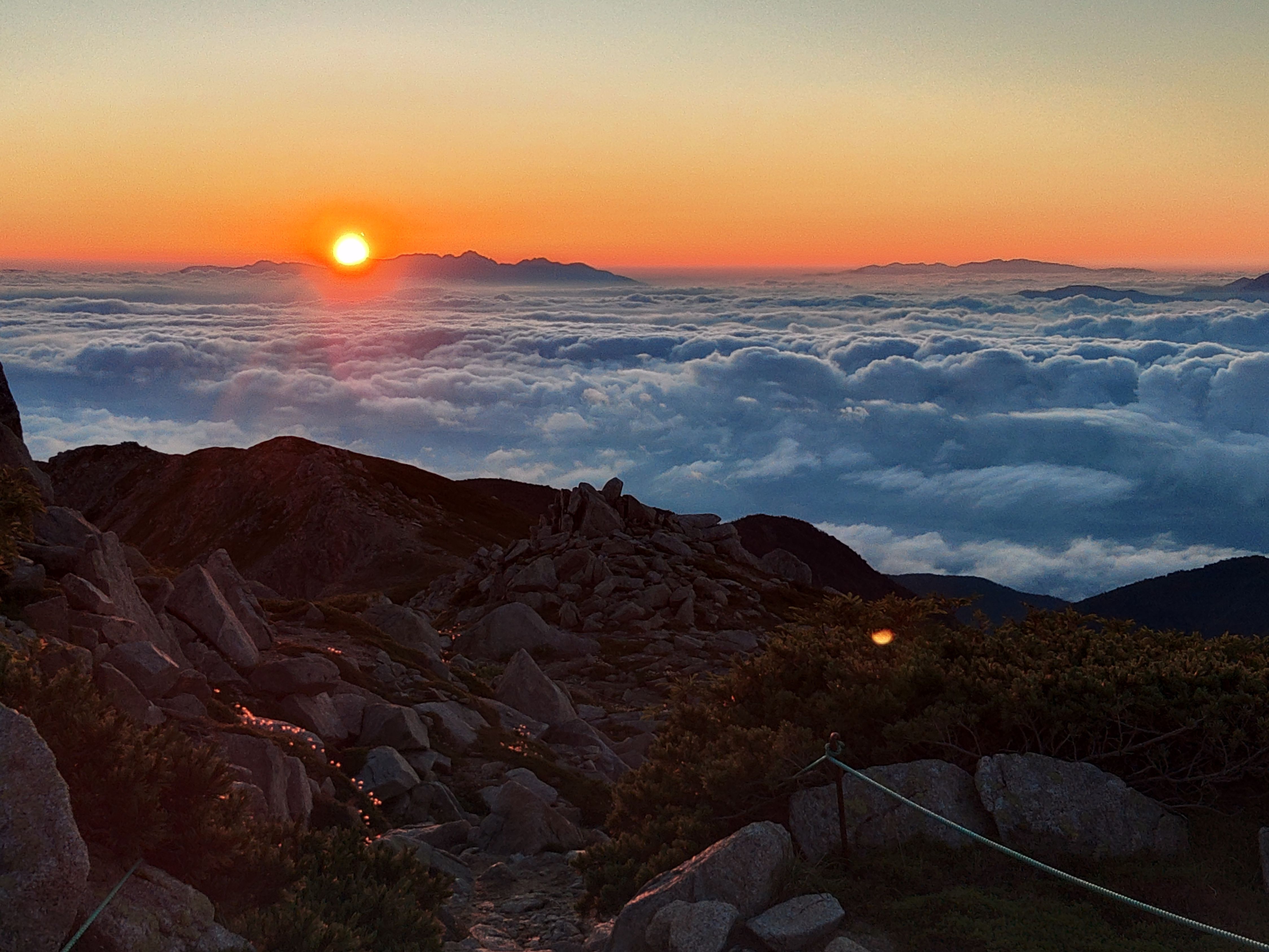 第1位 木曽駒ケ岳山頂からご来光〜八ヶ岳から昇る日の出 スマホカメラならではのオレンジ色が最高のお気に入り!