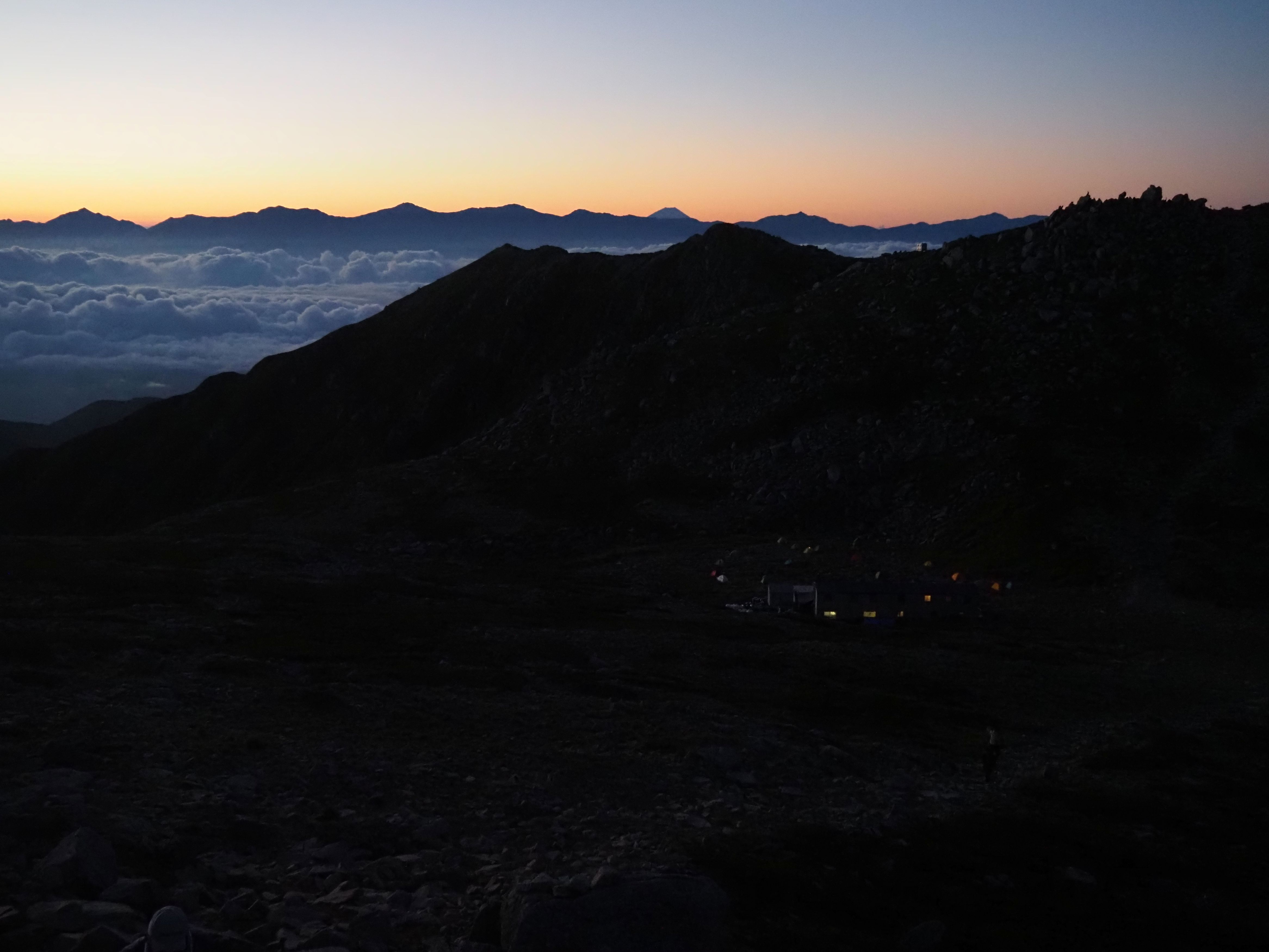 第3位 夜明け前の頂上山荘〜奥に南アルプスと富士山