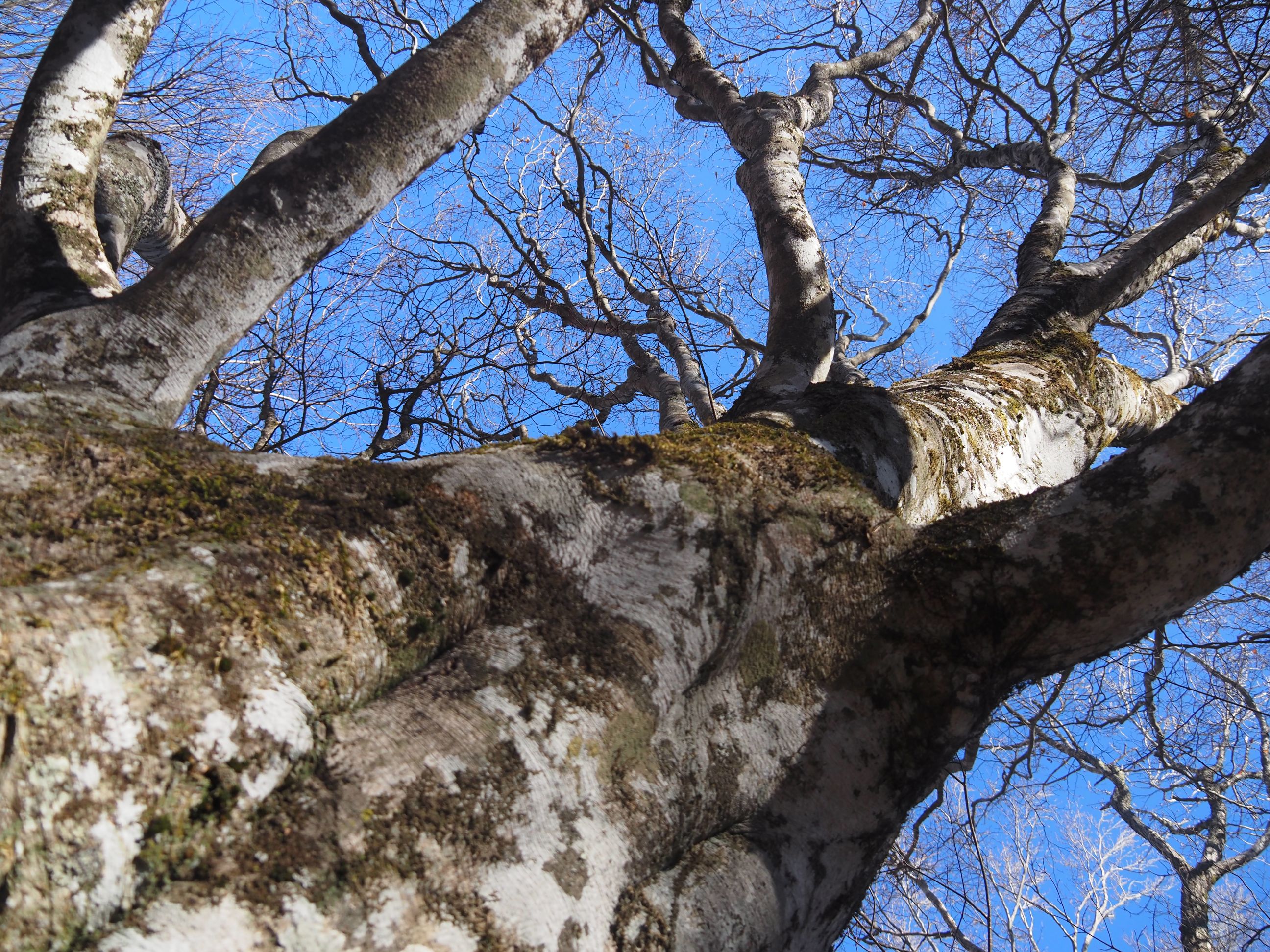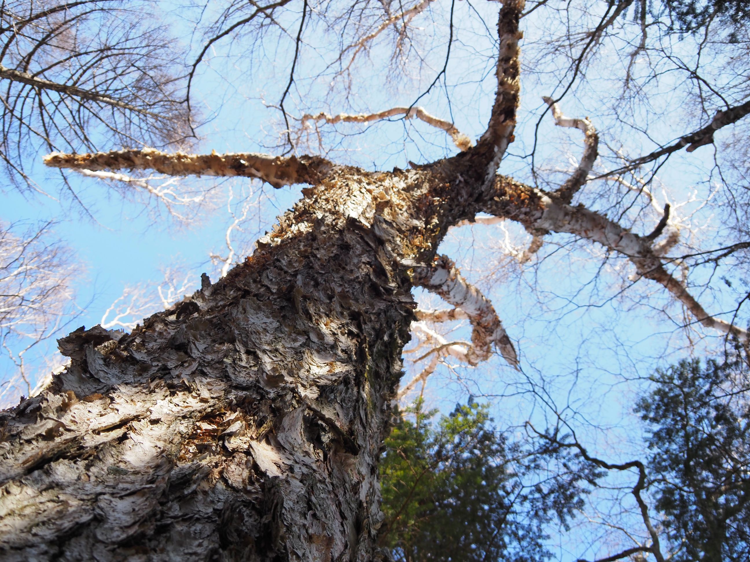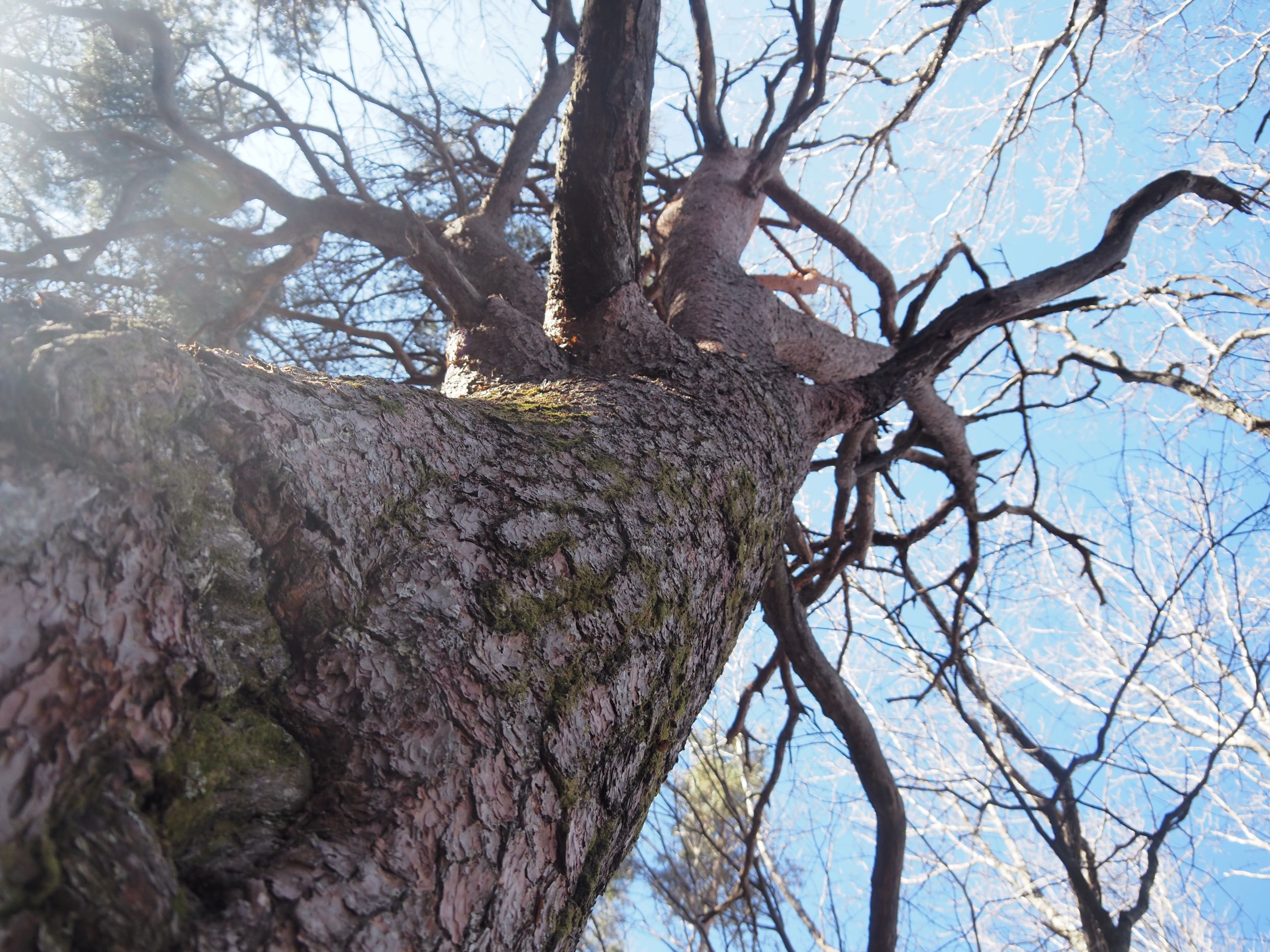 大きな樹木の存在感は、際立つ。枝を高く広く枝を広げて 太陽光を獲得しようという力強さが伝わってくることで。冬ならではの迫力。そんな静かな山歩き。